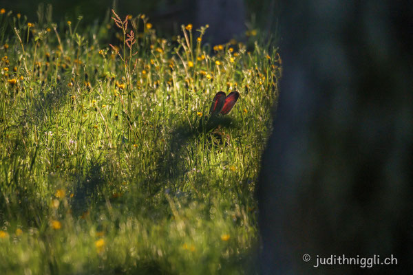Ein ganz besonderes Erlebnis. Vermutlich habe ich das gleiche Tier dreimal gesehen. Die ersten beiden Male kam es von links, einmal sogar sehr nahe an mich heran, leider noch fast im Dunkeln. Etwas später erschien es dann rechts neben mir im Sonnenlicht. Freude herrscht!